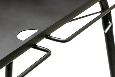 - Die vier Standbeine können alternativ auch abgebaut und der Tisch auf eine beliebige, hitzeresistente Unterlage gestellt werden.